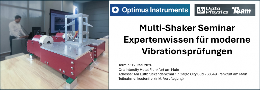Optimus-Instruments und Data Physics laden Sie ein zu einem kostenfreien Fachseminar. Erhalten Sie praxisnahe Einblicke in aktuelle Technologien, effiziente Prüfstrategien sowie innovative Systemlösungen für anspruchsvolle Testanforderungen. Die Inhalte orientieren sich am bewährten internationalen Seminarformat mit Fokus auf Systemauslegung, Regelungstechnologie und praxisgerechter Umsetzung komplexer Vibrationsprüfungen. Neben fundierten Fachvorträgen profitieren Sie vom direkten Austausch mit erfahrenen Experten sowie von wertvollen Networking-Möglichkeiten innerhalb der Branche.