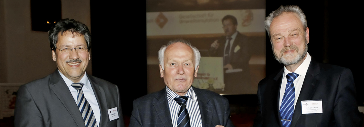 „Wir überreichen in großer Dankbarkeit Herrn Peter Trubiroha den Ehrenpreis der GUS und wünschen ihm vor allem Gesundheit und hoffentlich noch viele Teilnahmen an der Jahrestagung und am EWS.“